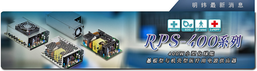 在原有的小型化5〞x3〞基板尺寸下,今年会持续向上提升输出功率至400W,新推出包含基板型、机壳型与机壳型含内建风扇(上方风扇与侧面风扇机型)的RPS-400/-C/-TF/-SF系列。RPS全家族产品已完整涵盖30~400W输出功率的应用范围,并提供多样化的机型选择,RPS家族预期将能以其完整的产品线与最佳的性价比,快速成为新一代医疗用标准电源的最佳解决方案。