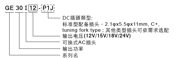 GE30系列 (30W AC插头可换式绿能适配器(Level VI))
